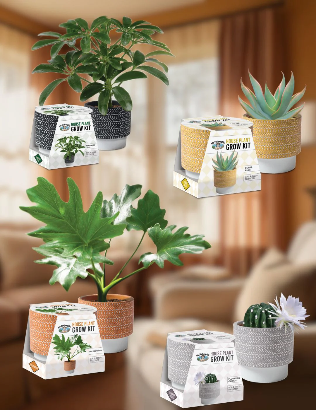 Each kit includes everything you need to grow three unique and beautiful plants, paired with stylish, hand-finished terracotta pots in vibrant, earthy tones: